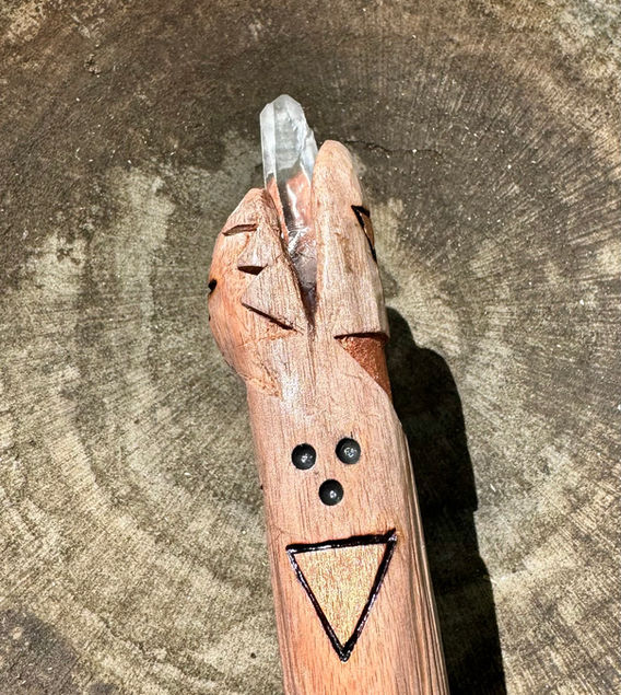 The wood remembers, and so will you. As you work with your wand, it provides a physical apparatus for tactile sensation (touch via the texture and markings). This provides the body and mind a tool to focus, and thus release into a higher state of being. Each time you use your wand, the body and mind will remember... "When I hold my wand, it's time to relax, to release, to breathe, to meditate, etc." It is a sacred object designed just for you, a tool for practice and tuning to your brightest self.